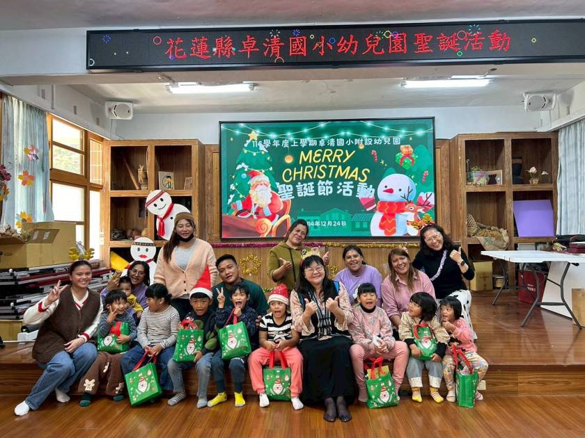 12月24日(三)一大早,和煦冬陽照在卓清國小的校園內,讓人感到心裡暖暖的,因為國小部的3-6年級學長姊特地為幼兒園親師生獻唱由布農族語改編的耶誕歌曲,幼兒園的孩子們也表演活潑可愛的舞蹈回報,溫馨的場面令在場者動容。