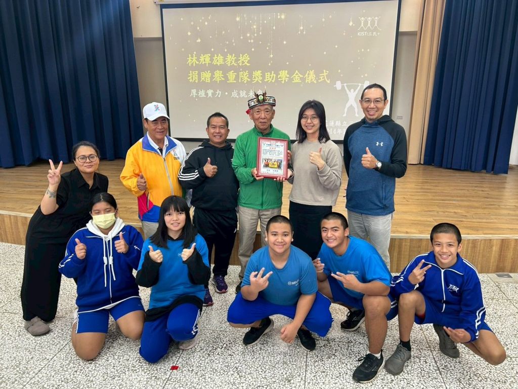 林輝雄教授也特別勉勵三民國中舉重隊學生,強調運動訓練與學業並重的重要性,並再次提醒守時、守信、守紀律與守訓,是一名運動員能走得長遠、站得穩的重要基礎。他更以自身數十年如一日的實踐,鼓勵學生將這份精神內化為一生的力量。
