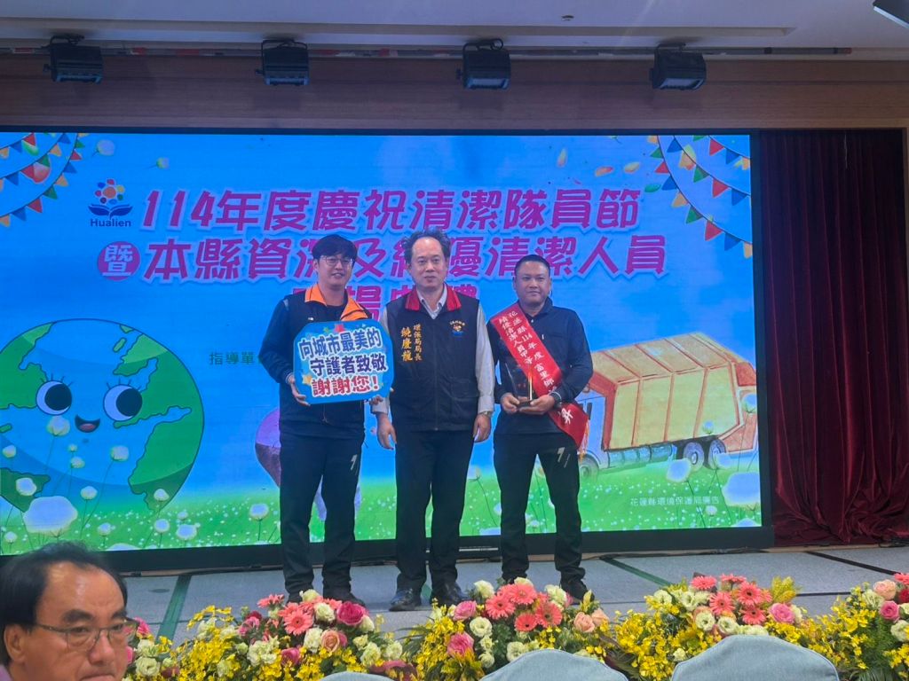 花蓮縣政府日前舉「114年度清潔隊員節表揚活動」,表揚長期投入環境清潔與公共服務的優秀清潔隊員與績優單位。富里鄉在此次活動中表現亮眼,不僅隊員個人獲獎,整體環境清潔成果亦獲縣府肯定,一舉斬獲兩項榮譽,成果豐碩。