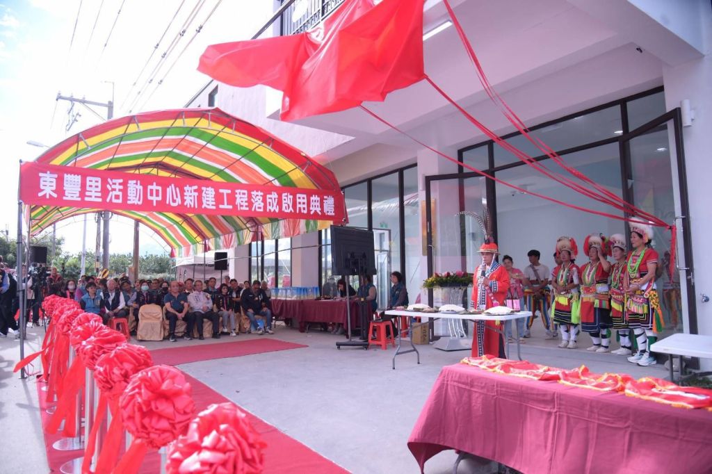 啟用典禮首先由阿飛赫部落頭目張壽福祭祀祈福展開序幕,玉里鎮公所說明,原有東豐里活動中心為民國68年以前興建,且土地之管理機關原為財政部國有財產署,建築物老舊、空間狹小且無合法使用執照,玉里鎮公所於112年2月提出改建計畫,希望藉由村里集會所活動中心興建,除可作為村民集會所活動及緊急避難中心外,亦可配合政府辦理各項社區照顧關懷據點、長期照顧、老人照護、兒童及少年、婦女等各項服務,並提供社區、臨近居民休憩空間,以促進地方整體的服務與發展,並能在合法合理情況下於此土地上辦理各項社區活動,不僅作為會務處理場所,同時也可做為社區活動紀錄展示空間,促進活動中心功能多元化。
