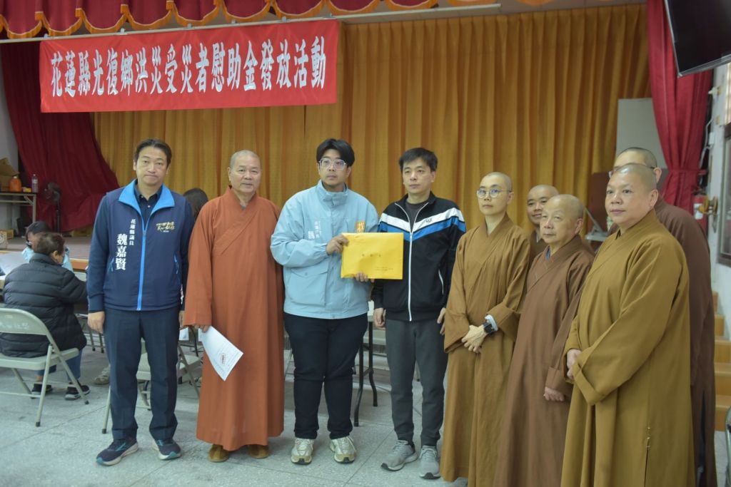 花蓮縣光復鄉今年9月因洪災造成嚴重災情,許多居民生活受到影響。花蓮市長魏嘉彥今(30)日與社團法人南投縣佛教會理事長圓明法師、花蓮縣議員魏嘉賢,以及社勞課同仁一同前往光復鄉大華活動中心,關懷受災鄉親並發放慰助善款,盼協助受災家庭度過難關,早日恢復正常生活。