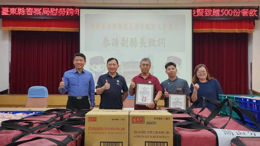 此次致贈儀式由臺東縣警察局局長蔡燕明主持,並代表公開接受。臺東縣政府副縣長王志輝也特地前來致詞感謝,對於業者長期關懷警察同仁的善舉及支持跨年活動,讓活動更加圓滿表達高度肯定,蔡局長並當場致贈感謝狀,感謝其善盡企業社會責任,為辛勞的警察人員送上溫暖與鼓勵。警察局長蔡燕明表示,警察肩負維護治安、交通順暢與民眾安全的重要使命,尤其跨年期間,全體警察同仁仍將堅守崗位,守護民眾平安迎新年。此次在地業者的暖心支持,不僅是對警察工作的肯定,更是一股持續向前的力量,讓同仁深刻感受到社會的信任與鼓勵。林漢增執行長表示,警察人員不分晝夜、不畏寒暑,在治安、交通及各項緊急狀況中始終站在最前線,特別是歲末年終及跨年期間,勤務更加繁重,期盼透過簡單卻溫暖的心意,讓同仁在執勤空檔能補充體力、感受社會的關懷與支持。郭俊賢經理也表示,希望藉由此次行動,拋磚引玉,讓更多民眾一同關心並支持守護社會的警察英雄。