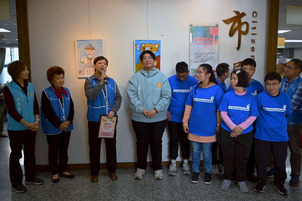 花蓮市公所「市民藝廊」長期推廣在地藝術創作,此次特別邀請黎明教養院學員展出作品,透過色彩大膽、題材多元的畫作,展現學員們純真真誠的創作能量與對生活的獨到觀察。展出內容包含小狗、鋼蛋勇士、自畫像及大草原等主題,想像力十足,展覽導覽期間,學員們也親自向市長魏嘉彥介紹創作理念,現場氣氛溫馨感人。