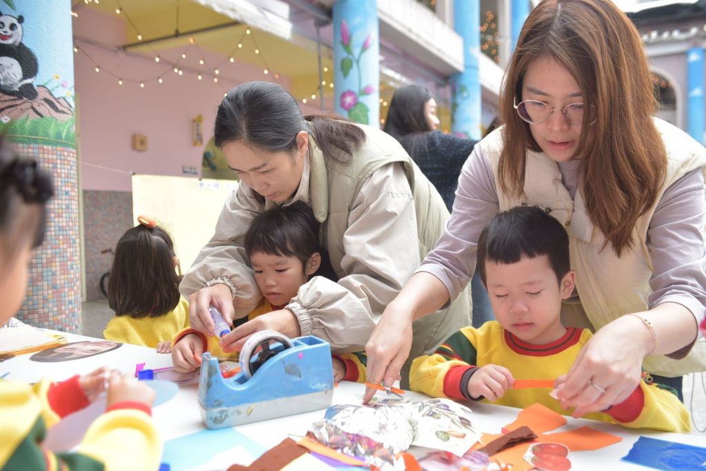 此次成果發表會內容相當豐富,包含各班幼兒平日創作的紙藝作品與主題大書展示,呈現孩子們在討論與合作中的學習歷程;同時規劃多項闖關活動,讓幼兒透過實驗與遊戲,實際觀察紙張的吸水、變化與結構特性,提升學習的深度與趣味性。