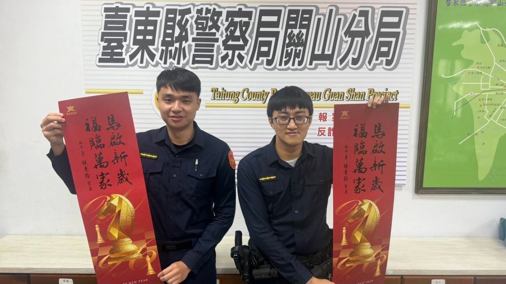 臺東縣警察局表示,縣長所致贈之春聯,由警察局統籌分送所屬臺東、關山、大武及成功等四個警分局。其中,關山警分局於接獲春聯後,立即完成分送作業,轉發予轄內各分駐(派出)所,並張貼於各所門首(口)及洽公民眾可清楚看見之明顯位置,讓新春祝福成為分局及各分駐(派出)所迎接民眾的第一道風景,營造警民互動溫馨氛圍。關山警分局指出,轄區涵蓋多個鄉鎮及原鄉部落,春節期間返鄉人潮與旅遊車流將明顯增加,於期前,分局將依轄區特性及歷年經驗,周延規劃春節加強勤務,全面動員所屬各分駐(派出)所警力,落實治安巡邏、交通疏導及為民服務等工作,確保各鄉鎮在年節期間治安平穩、交通順暢。此外,也同步結合春節勤務,持續向民眾宣導防詐騙及交通安全觀念,提醒慎防假投資、假檢警及網路交友等詐騙手法,並呼籲民眾遵守交通規則,共同維護安全的生活環境。