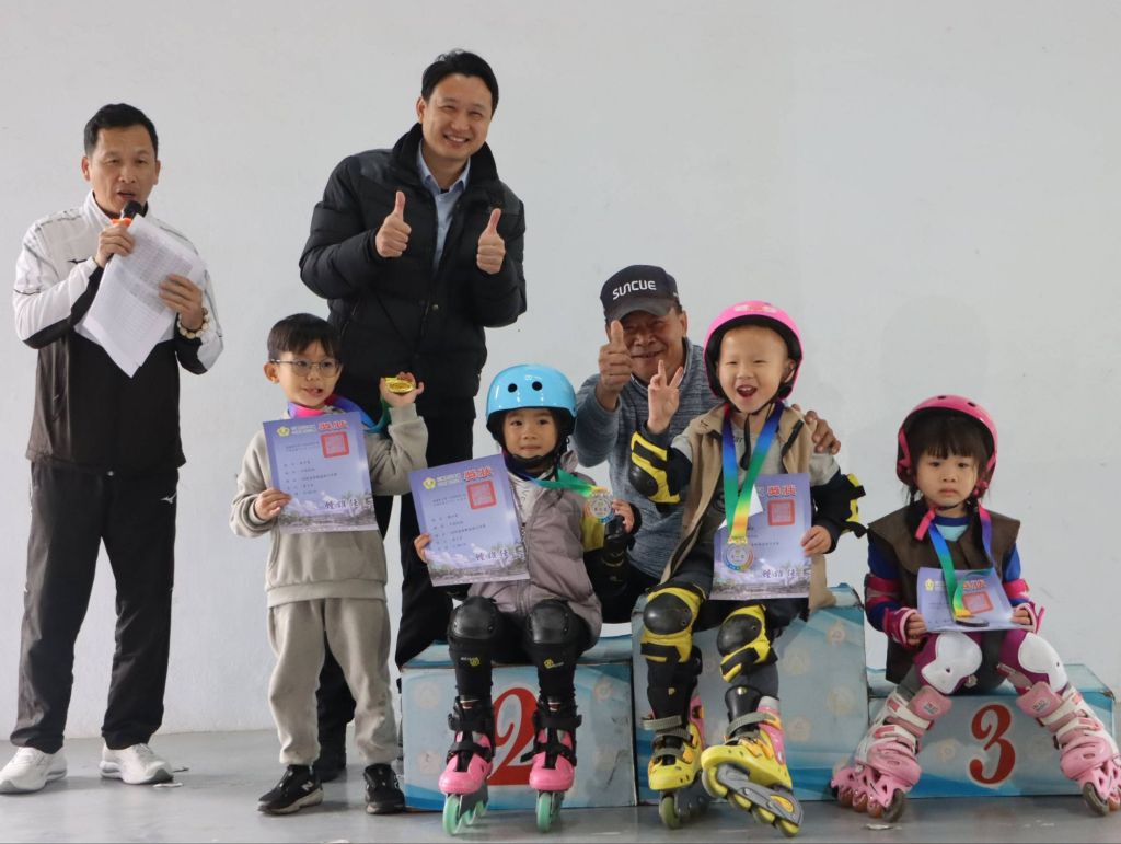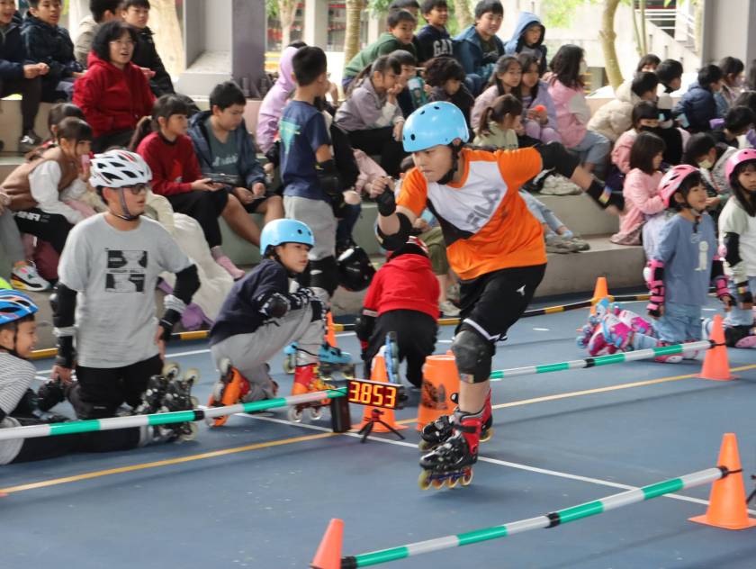 此次賽事依年齡分為幼兒園組、國小低年級組、中年級組及高年級組,競賽項目包含彎道競速與直線加速,考驗學生的平衡感、爆發力與臨場反應。孩子們全副武裝、全力以赴,在賽道上盡情奔馳,不僅展現平日勤奮練習的成果,也在比賽中體驗運動帶來的自信與成就感。