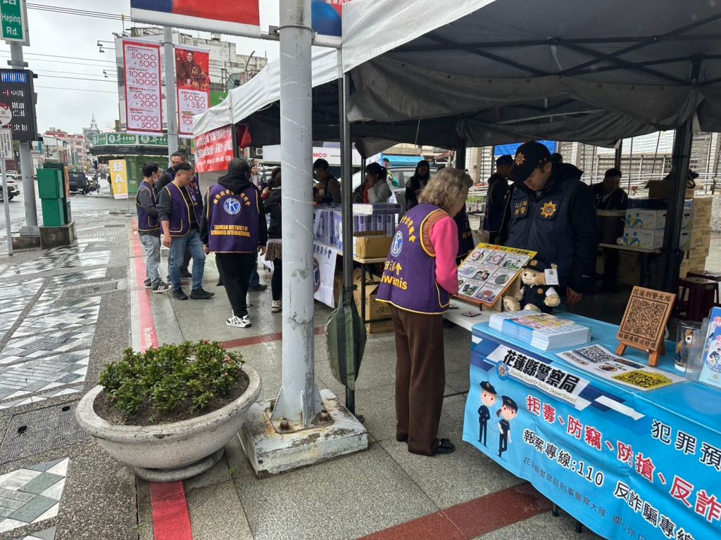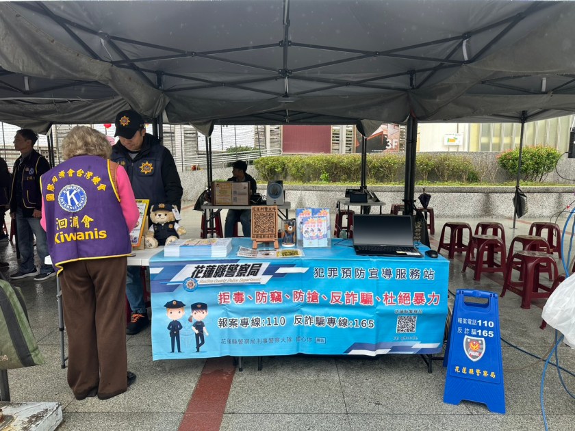 花蓮縣刑大透過圖文看板、有獎徵答及互動宣導方式,針對青少年藥物濫用問題、近期詐騙話術趨勢及社會暴力型態進行深入淺出的說明。許多路過民眾駐足停留,主動詢問常見詐騙陷阱與自我防範方式;更有學生與長者參與反毒知識搶答,氣氛熱絡。此次活動不僅讓民眾收穫防範犯罪的知識,也藉此機會強化社區共識,打造更加安全的生活環境。