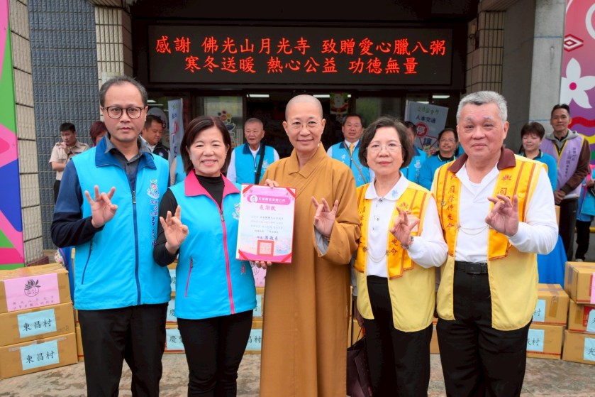 游淑貞鄉長同為佛光人吉三分會成員,對妙勳法師與月光寺師兄、師姐、志工們表達無限的感謝,提到無論是0403強震或是0923洪災,月光寺都在第一時間給予災民與受災家戶滿滿的愛與挹注。而每年這個時節,透過一碗碗暖胃又暖心的臘八粥,不僅紀念了佛陀成道日,更重要的是將社會的善念與溫暖傳遞出去。再次感謝月光寺師兄姊們不畏清晨刺骨的寒風與冰水,捲起衣袖親自熬煮暖胃的健康好粥,為千餘名鄉親帶來溫暖與關懷,更為新年開啟福氣滿滿的嶄新氣象。
