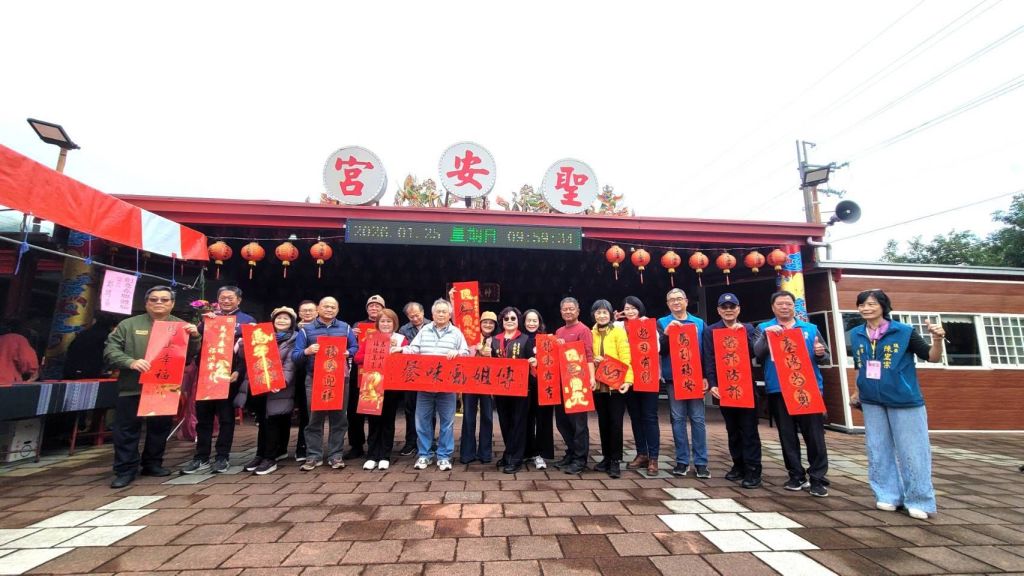 此次活動由聖安宮主任委員李樹根發起辦理,李主委長年樂善好施、熱心公益,對待鄉內民眾如同親人一般,曾捐贈救護車,並於寒冬時節送暖,致贈羽絨外套予鄉內長者,是地方鄰里口中公認的「大善人」。有鑑於農曆春節將近,特別舉辦此次贈春聯活動,希望透過傳統書法文化,為鄉親送上滿滿的新春祝福。活動當日由聖安宮副主任委員傅錦英主持,現場冠蓋雲集,蒞臨會場的民意代表包括縣議員陳宏宗、鹿野鄉長李維順、縣長秘書王馨梅、議長秘書溫昌寶、潘貴蘭議員服務處主任張博翔、立法委員黃建賓服務處主任彭國雄,以及鄉民代表郭清塗、鄧清欉等人,另有多位地方士紳與鄉親共襄盛舉,展現地方高度凝聚力。活動現場邀請多位書法名家揮毫潑墨,免費為民眾撰寫春聯,內容吉祥喜氣,象徵迎春納福、祈福避凶;另設有創意春聯及拓印春聯體驗活動,讓民眾能親手感受書法藝術之美,吸引鄉內大批民眾扶老攜幼前往參加,現場人潮絡繹不絕,氣氛熱鬧滾滾,洋溢濃厚年節氛圍。