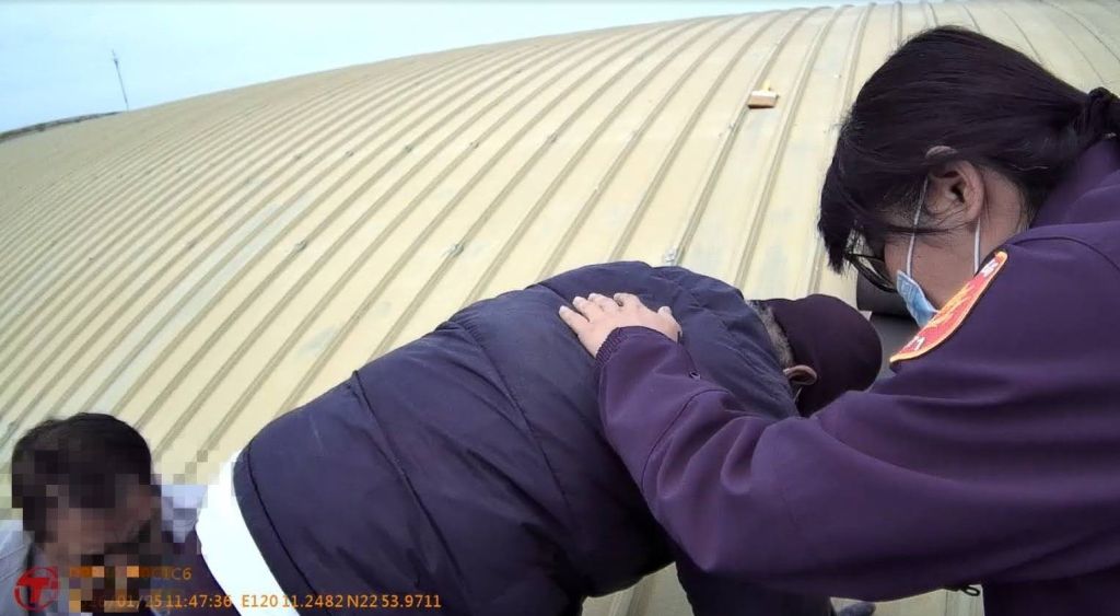 高雄市政府警察局湖內分局茄萣分駐所警員陳怡玲、實務訓練生許文豪,於115年1月25日10至12時擔服巡邏勤務期間,接獲110通報稱茄萣區港埔街一名老翁不顧家人勸阻,堅持自行爬上屋頂施工,情況相當危險。