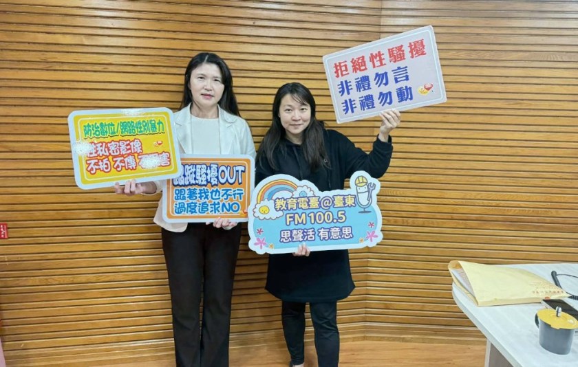 臺東縣警察局婦幼警察隊日前由榮獲第十屆「紫絲帶獎」隊長余麗娟前往「教育電臺臺東分臺」接受專訪,在主持人李思瑩在「思聲活 有意思」節目中,針對「性平三法與性別平權」議題進行宣導,藉由線上廣播節目強化前端預防工作,透過相關法令及實務解析,加強聽眾對性平三法的認知、解構性別不平等的錯誤觀念,及防治性騷擾的惡意行為,以防制數位性別暴力情事發生。