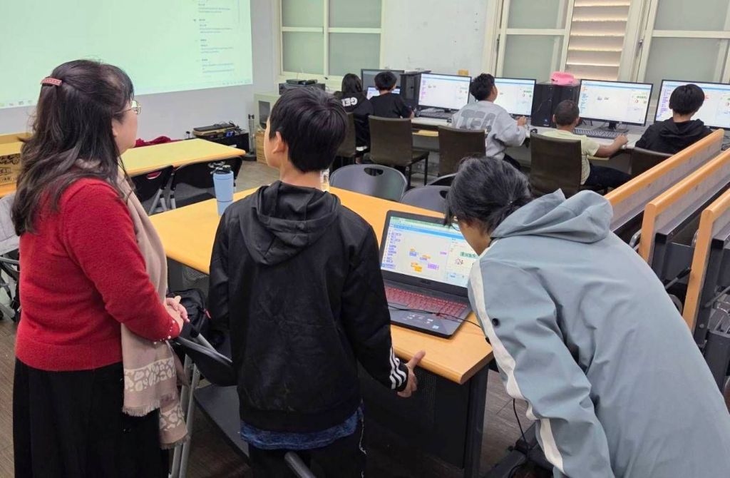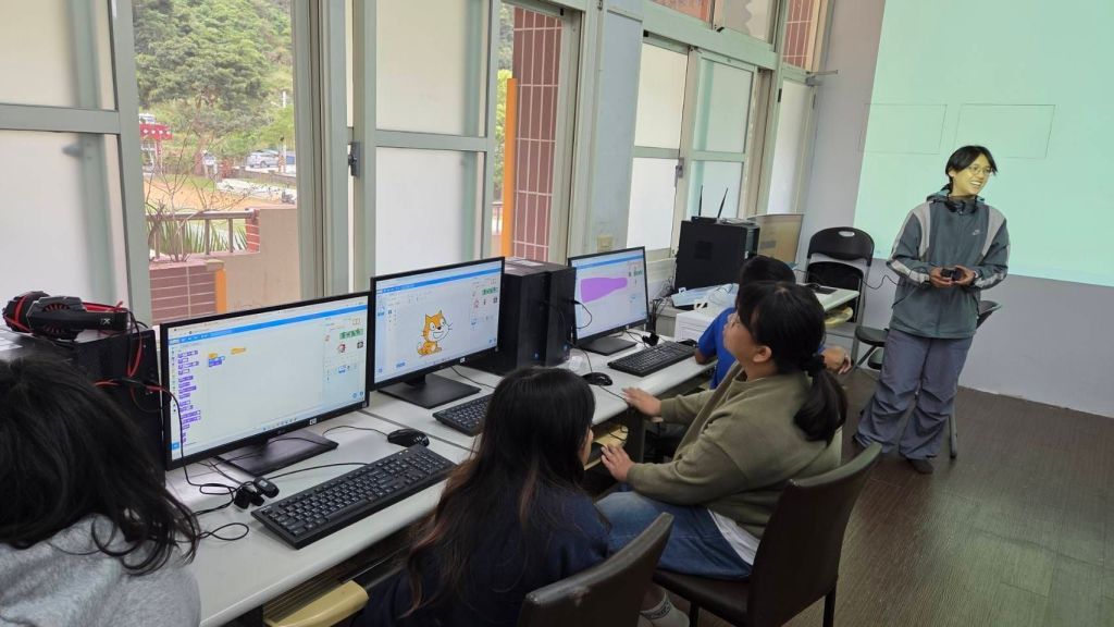 呂奎漢老師表示此活動為寒假科技營隊課程,內容包含程式設計、AI應用、機器人實作等,培養學生邏輯思維與創新能力,課程兼具趣味性與學習性。第一日的課程為「Scratch3基本認識:程式是什麼?」及「Teachable Machine:我們來教電腦認識物品!」每位小朋友都很認真學習,努力嘗試完成老師的指令,雖然失敗的次數很多,但是他們都不放棄,經過多次改錯及修正,最後成功時的驚呼及開心,令在旁陪伴的師長都不禁為他們喝采!