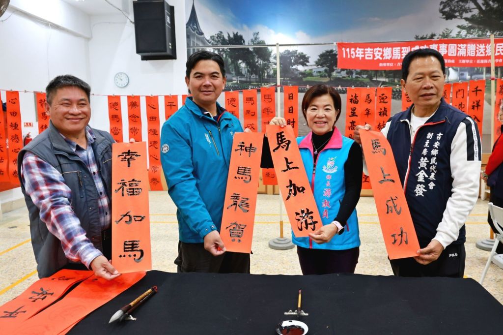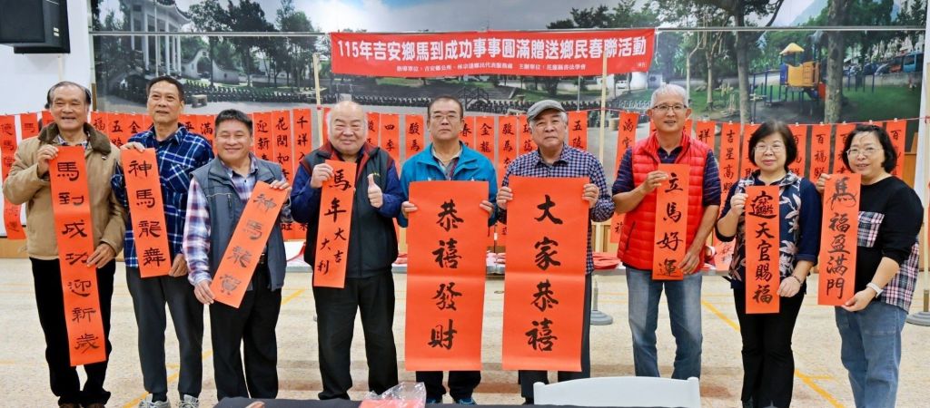 「馬到成功.幸福加馬」活動陸續在各社區活動中心、廟埕、菜市場、公園、廣場及村長服務處等地點展開,吉安鄉公所誠摯邀請鄉親就近參與,感受年節氛圍與書藝之美。相關活動資訊請至吉安鄉公所全球資訊網或臉書粉絲專頁查詢。