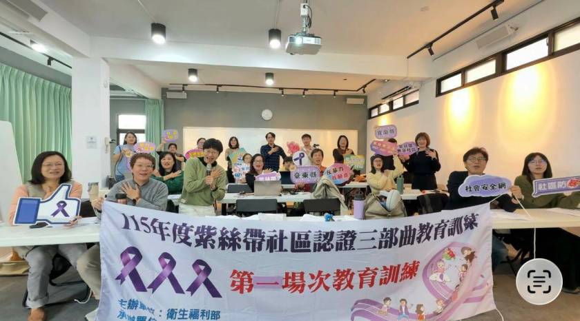為讓地方政府與社區能更精準掌握紫絲帶認證三部曲的核心精神與實務操作,衛生福利部委託社團法人台灣福利厚生學會辦理「紫絲帶社區認證暨教育訓練計畫」,透過分區教育訓練與輔導,協助各直轄市、縣(市)政府社區初級預防業務人員(包含社區業務人員與家庭暴力防治業務人員),熟悉認證機制運作、指標定義與實際應用,並強化補助計畫撰寫、成果報告、自我成效檢視及認證申請等關鍵能力,全面提升地方推動社區防暴工作的專業度與一致性。