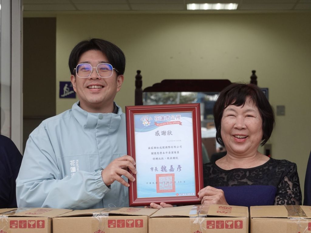 為感謝花蓮市清潔隊長期以來堅守崗位、默默付出,維護市容環境整潔,松成號國際有限公司董事長廖美燕昨(29)日特別送上200盒巧克力捲餅致贈清潔隊員,向第一線清潔人員表達誠摯的敬意與謝意。
