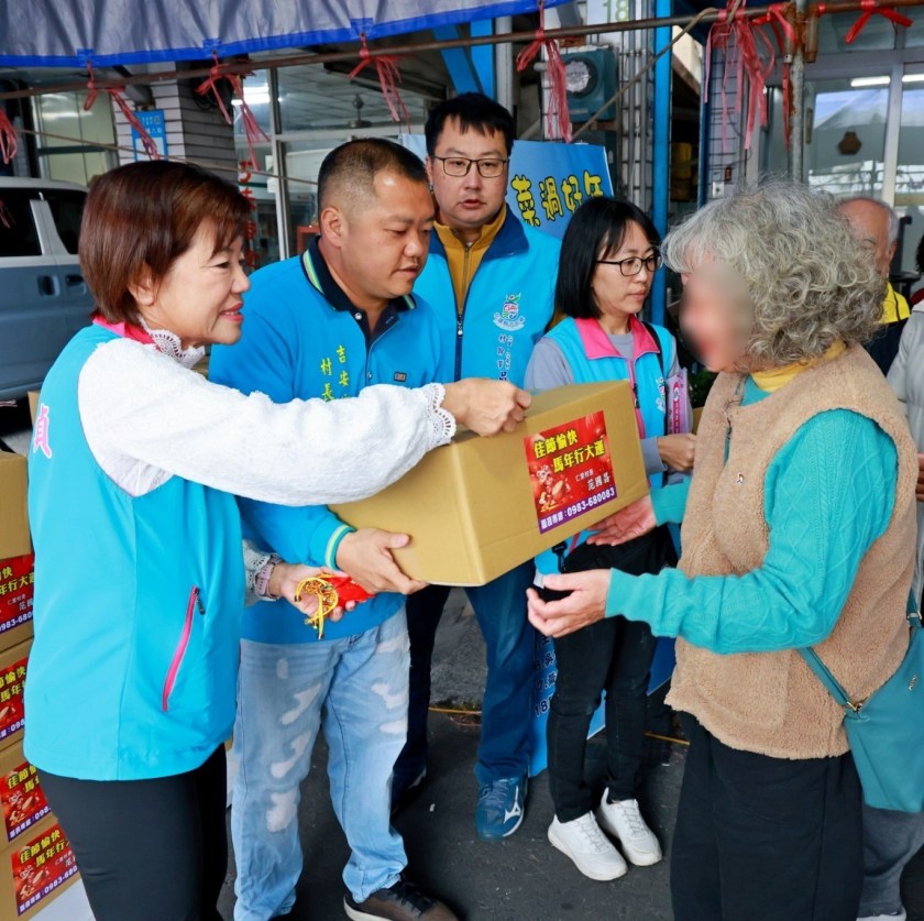 活動現場雖飄著毛毛細雨,現場氣氛卻格外溫暖。此次年菜發放對象為仁里村、東昌村的低收入戶、中低收入戶及中低收入老人,匯聚在仁里村長家前、依序排隊領取愛心年菜。年菜共200份,且內容豐富「五菜一湯」象徵團圓與祝福,期盼陪伴家戶暖心迎接新年。現場亦有寫春聯活動,紅紙與墨香交織出濃濃年味,長輩們手持春聯、笑容滿面,提前感受過年的喜悅。游淑貞也逐一向鄉親問候寒暄,並特別加碼致贈馬年限定祝福金幣,祝福大家新年健康平安、鴻運大發,現場洋溢著溫馨的人情氛圍。