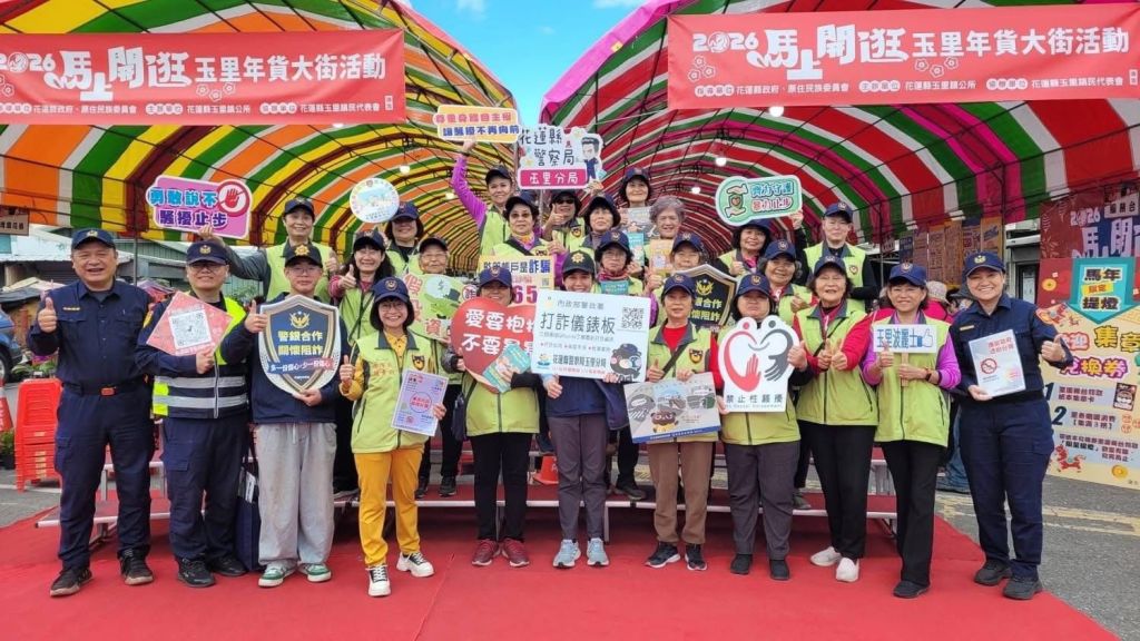 此次玉里警察志工中隊由中隊長鍾素政率領各位志工媽媽,特別配合警方藉由年貨大街開幕,與現場民眾及攤販商家互動熱烈,為更接近民眾,製作文宣與民眾當面宣導來讓民眾了解警政署所設「打詐儀表板」來防止自身受騙;最後也請民眾能度過快樂平安的農曆春節。