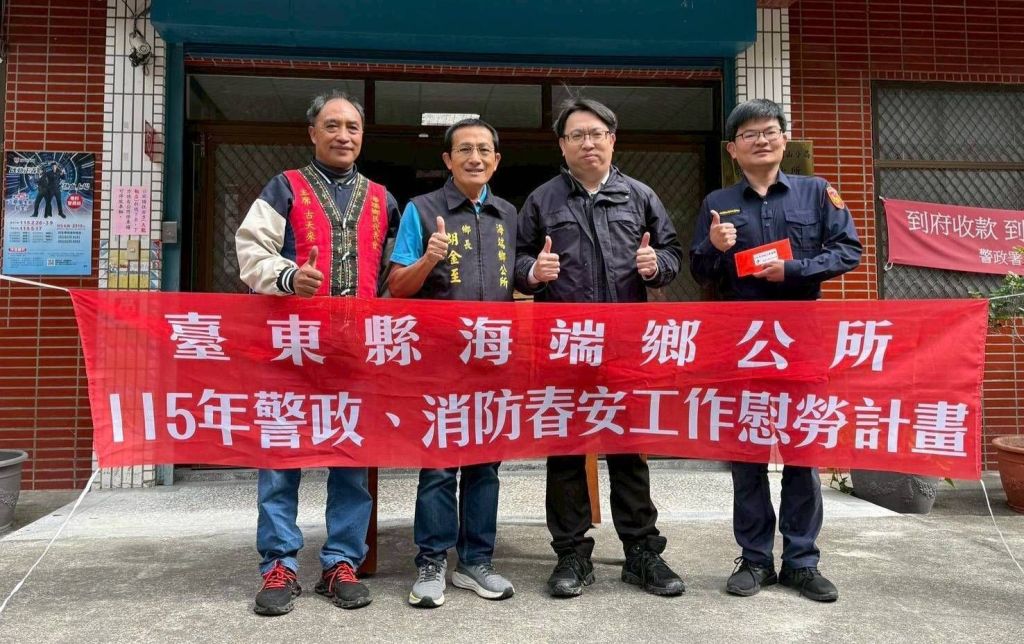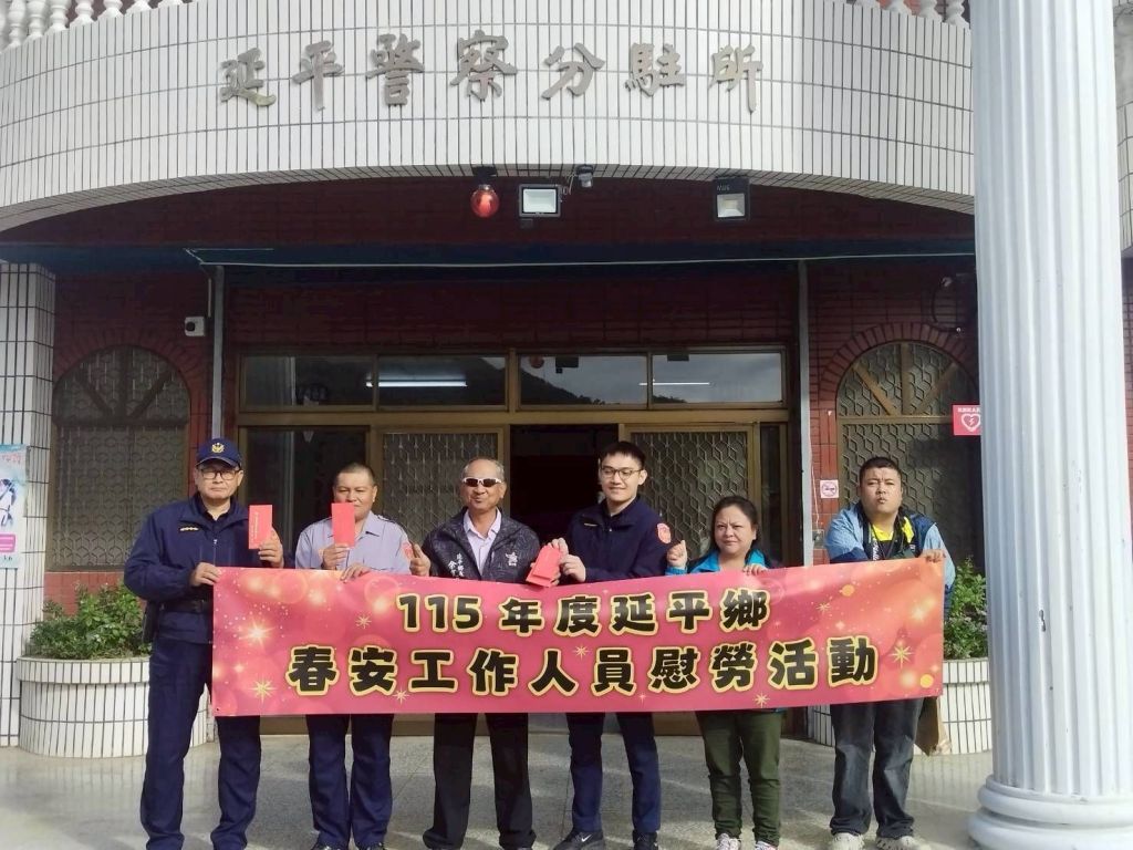「115年加強重要節日安全維護工作」即將展開,臺東縣縱谷線各鄉、鎮長為感謝基層員警長年守護地方治安與交通安全,日前陸續前往轄內分駐(派出)所表達慰勉。延平鄉長余光雄、代表會主席古天來、海端鄉長胡金至、代表會主席邱文俊、池上鄉長林建宏、代表會主席林文雄、鹿野鄉長李維順、代表會主席陳韋吉等人,均於春節前夕親自到各所致贈泡麵、餅乾及飲料等慰問品,讓犧牲農曆假期、不分晝夜執勤的員警能即時補充體能,也感受到來自地方的溫暖支持。