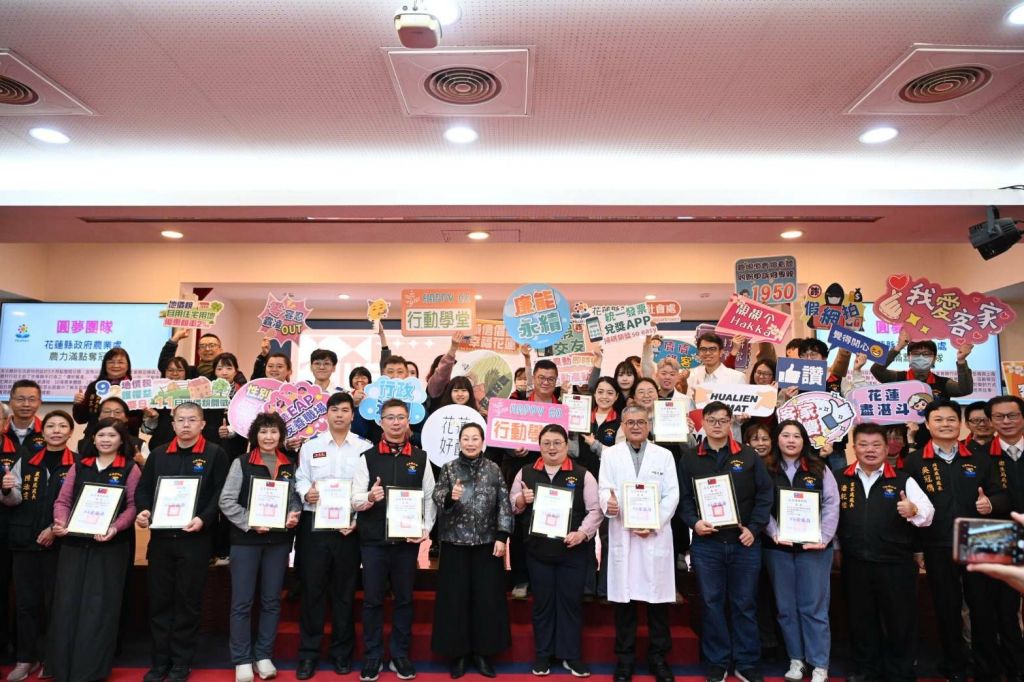 114年12月份圓夢團隊:客家事務處亮靚勁的花蓮客家團隊,積極推動客語發展與文化傳承,參與中央評核並列全國第二,榮獲佳等並獲頒100萬元獎勵金;衛生局災難醫療超人光復醫療先鋒隊,於0923馬太鞍溪堰塞湖溢流,超前部屬於光復設置醫療站,穩住災中唯一生命樞紐;地方稅務局租稅宣導及服務卓越執行團隊,106年至113年連續8年榮獲財政部稽徵業務考核「疏減訟源績效類—租稅教育及宣導」分組優等。