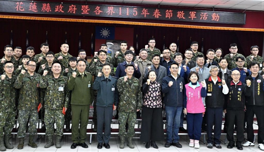 春節將屆,花蓮縣各界為慰勉國軍官兵長年守護國家安全與投入地方救災的辛勞,今(9)日由縣長徐榛蔚率領縣內各工商企業界代表,在花蓮縣政府民政處代理處長吳俊毅及軍人服務站站長黃鍾昌陪同下,前往陸軍第二作戰區南美崙營區及空軍教育訓練暨準則發展指揮部進行慰訪,並致贈團體慰問金及與駐軍主管共慶春節,表達感謝國軍戍守家園、巡弋領空的卓越貢獻。
