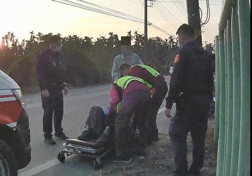 屏東縣政府警察局里港分局鹽埔分駐所警員孫建明、陳海涵日前執行巡邏勤務返所途中,行經民意路段時,發現一名阿伯向警車招手,警方隨即返回該路段,發現阿伯是因身體不適向警方求助,孫、陳二員趕緊通報119救護,經即時就醫幸無大礙。