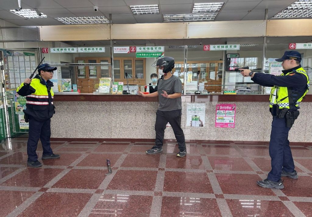 因應農曆年前金融機構現金往來頻繁,為提升防制強盜案件及應變處置能力,花蓮縣警察局鳳林分局於115年1月29日上午10時30分,分別在長橋郵局及鳳林農會萬榮分部,實施年前防搶演練。