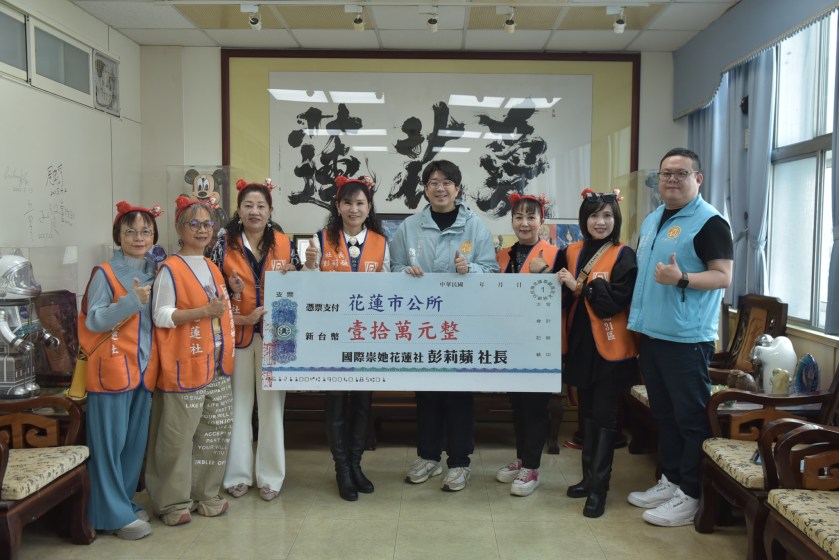 國際崇她花蓮分社社長彭莉蘋11日率領社內姊妹們前往花蓮市公所拜會,並以個人名義捐贈新臺幣10萬元至市公所慈愛基金,支持「愛心年菜發放」計畫,盼在歲末寒冬之際,為弱勢家庭送上一份溫暖與關懷。花蓮市長魏嘉彥親自接待,並頒贈感謝狀,肯定彭社長長期關懷地方、熱心公益的善行義舉。