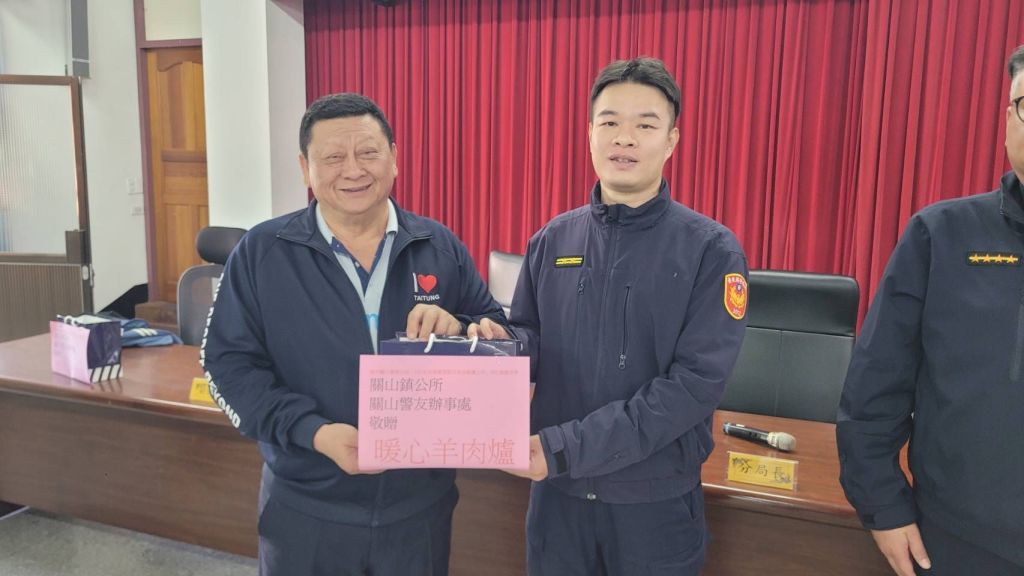 今(12)日10時30分,兩人把握分局召開週報時機,親自前往關山警分局會場,致贈分局各組、隊、中心及各警分駐(派出)所「暖心羊肉爐」,為執勤同仁補充元氣,也象徵地方對警察的溫暖支持。致贈儀式雖簡單卻格外隆重溫馨。陳宏宗議員表示,春節是家人團聚的重要時刻,但警察為了守護鄉親安全,選擇留在崗位上,他身為警友會一員,更能體會同仁辛勞,希望透過一鍋熱騰騰的羊肉爐,讓大家在寒冬中感受到社會的關懷,也盼警民攜手,讓縱谷地區度過平安好年。鎮長彭成豐也指出,關山鎮治安與交通能長期保持穩定,仰賴分局同仁的專業與付出。過年期間觀光人潮與返鄉車流增加,警察勤務更加吃重,鎮公所願成為警政最堅實的後盾,未來將持續整合地方資源,支持各項治安與交通工作,讓民眾生活更安心。
