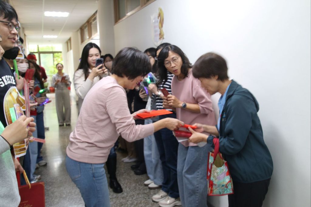 饒慶鈴上午9時40分起由國計處長李素琴等人陪同,自行政處、交通處開始,逐層分別前往縣府辦公廳舍及新大樓的內處辦公室、媒體寫稿室、教育處等縣府各局處,提前向同仁、員警、新聞媒體朋友拜年,祝賀大家新春愉快、家庭一切和樂美滿,感謝縣府團隊過去7年來共同打拼下,繳出非常漂亮成績單,已經讓台東具國際知名度,希望能夠繼續擦亮台東品牌,也謝謝警察、消防等各單位同仁,過年期間犧牲假期及與家人團聚時間,期盼能夠交通順暢、零災害。隨後來到嗎哪食堂贈送春節禮品及紅包袋,饒縣長特別鼓勵及歡迎大家能夠多多購買或光顧他們的生意。
