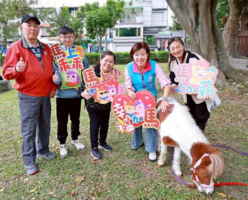現場另一大亮點「迷你馬親子療育互動區」更吸引目光。公所安排溫馴的迷你馬「多多」,由專業人員帶領親子學習如何撫摸、餵食並與動物和平共處。孩子們開心體驗「遛馬」的樂趣,家長也在歡笑聲中感受難得的親子時光,園區洋溢著溫馨與喜悅。