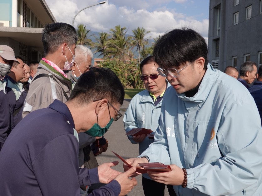 農曆新年假期尚未結束,花蓮市清潔隊已於2月20日大年初四上午準時開工,守護市容環境不打烊。花蓮市長魏嘉彥特地一早前往清潔隊為隊員們加油打氣,逐一致贈開工紅包,感謝大家在年節期間堅守崗位,讓市民能在乾淨整潔的環境中迎接新的一年。