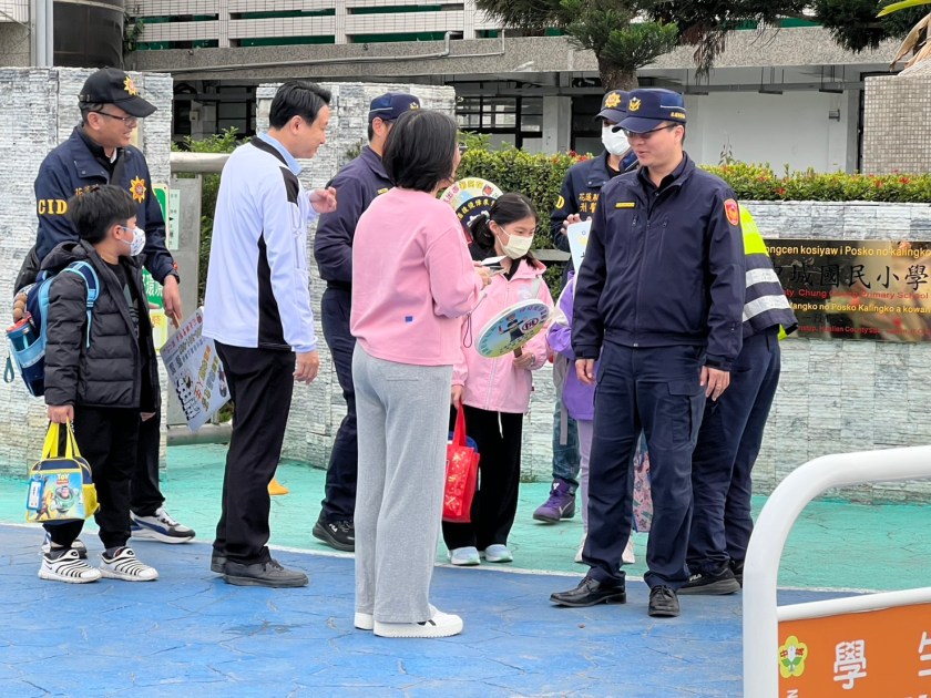 2月23日為全國中小學開學日,莘莘學子精神抖擻迎接新學期,家長與學生一早便陸續出門,各校周邊人潮、車流明顯增加。為確保學童上下學安全,花蓮縣警察局玉里分局全面動員警力,由分局長許竣閔親自率領偵查隊、交通組及轄內各分駐(派出)所同仁,針對轄區內35所中小學執行校園安全維護及預防犯罪宣導工作,並與校方師長及志工媽媽攜手投入護童勤務,展現警方守護學童安全的決心與行動力。