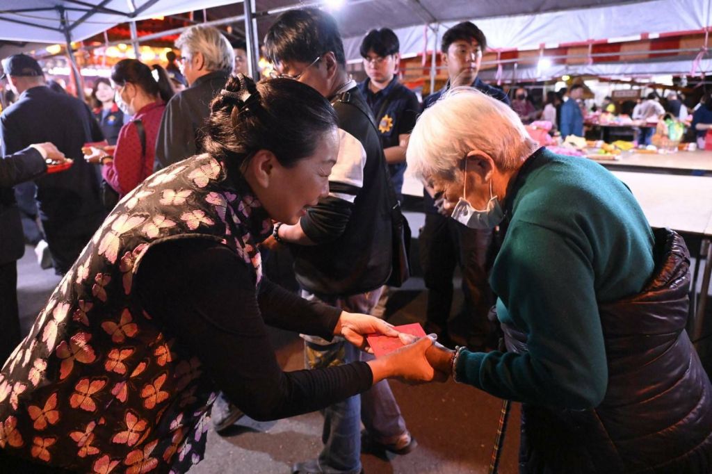 最令民眾期待的「發送福袋」活動正式展開,徐縣長與傅立委逐一將福袋送到民眾手中,不少老人家及小朋友領到提燈後露出開心的笑容,並互道新年快樂。現場人山人海、人聲鼎沸,排隊人潮一路延伸至周邊巷弄,大家爭相握手合照,熱絡的互動為新城鄉注入滿滿的活力與喜悅。