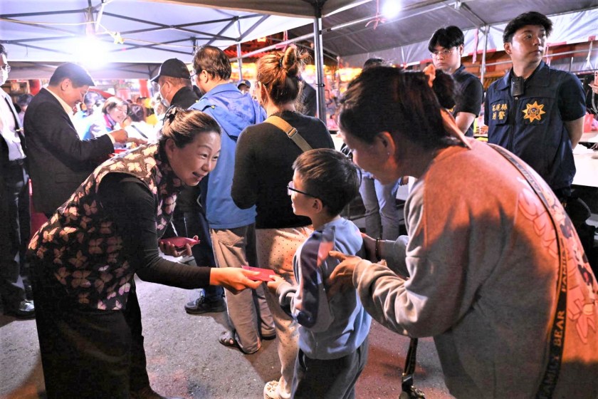 最令民眾期待的「發送福袋」活動正式展開,徐縣長與傅立委逐一將福袋送到民眾手中,不少老人家及小朋友領到提燈後露出開心的笑容,並互道新年快樂。現場人山人海、人聲鼎沸,排隊人潮一路延伸至周邊巷弄,大家爭相握手合照,熱絡的互動為新城鄉注入滿滿的活力與喜悅。
