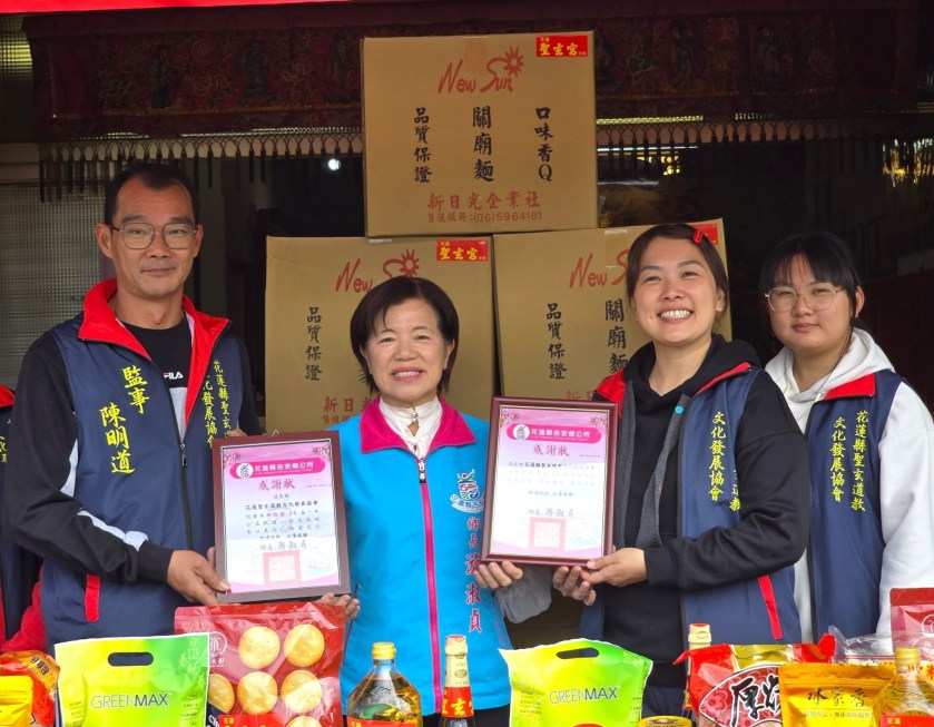 花蓮縣聖玄道教文化發展協會整合信眾愛心,捐贈30大箱綜合民生物資予吉安鄉弱勢家戶外,追加響應「認養光明路燈」計畫,今年再度認養20盞路燈,守護晚歸用路人的行車與行走安全,也為弱勢家庭補足基本生活所需。吉安鄉長游淑貞偕同社會課團隊親赴聖玄宮,致贈感謝狀予聖玄宮及花蓮縣聖玄道教文化發展協會,感謝長年善行不輟、公益不缺席。鄉公所堅守擔綱「愛心轉運站」的守護運能,確保物資與資源能夠即時、精準送達需要幫助的鄉親手中,陪伴弱勢家戶穩定生活、勇敢迎向未來。