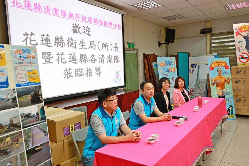 吉安鄉公所清潔隊在推動無菸健康職場上成效卓越,不僅在113年及114年連續榮獲花蓮縣無菸健康職場評比最高殊榮「領航獎」,更成功輔導多位隊員戒除多年菸癮,成為全縣典範。為分享這份成功經驗,吉安鄉清潔隊今(4)日擔任衛生局辦理「清潔隊無菸健康職場觀摩活動」的示範單位,迎接全縣各鄉鎮市清潔隊代表齊聚觀摩交流。吉安鄉公所攜手衛生所積極推行職場戒菸,期盼透過此次實地參訪,將在地成功打造友善無菸工作環境的經驗擴至全縣。