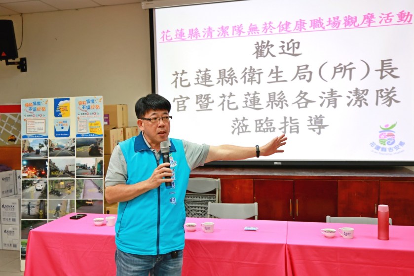 吉安鄉公所清潔隊在推動無菸健康職場上成效卓越,不僅在113年及114年連續榮獲花蓮縣無菸健康職場評比最高殊榮「領航獎」,更成功輔導多位隊員戒除多年菸癮,成為全縣典範。為分享這份成功經驗,吉安鄉清潔隊今(4)日擔任衛生局辦理「清潔隊無菸健康職場觀摩活動」的示範單位,迎接全縣各鄉鎮市清潔隊代表齊聚觀摩交流。吉安鄉公所攜手衛生所積極推行職場戒菸,期盼透過此次實地參訪,將在地成功打造友善無菸工作環境的經驗擴至全縣。