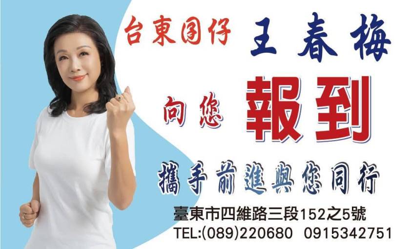 「台東人的事,就是我王春梅的事。我帶著回饋家鄉的心,要用女性溫柔而堅定的力量,為台東注入更多溫暖。」