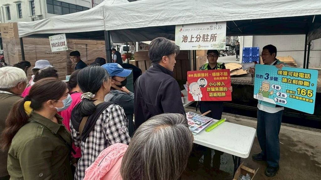 關山警分局表示,農民朋友長年辛勤耕耘,是地方社會的重要支柱,警方除維護地方治安與交通安全外,也希望透過深入社區與活動現場宣導,將最新的防詐與交通安全資訊傳達給更多民眾,特別是偏鄉地區長者。未來也將持續透過各類活動與社區宣導,守護民眾財產安全與用路安全,共同打造安心、平安的生活環境。