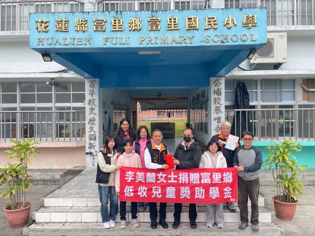 花蓮縣富里鄉傳出溫馨善舉!旅居外地的家鄉子弟李女士,因心繫故鄉學子,慷慨捐贈富里鄉內共 11 所國中小學之低收入戶學童,每人新台幣 4,800 元獎助學金,並貼心附贈文具組。富里鄉長江東成為感佩李女士的飲水思源,今(10)日前親自前往富里國小、東竹國小及東里國小,將這份沉甸甸的愛心交託給各校校長與老師,鼓勵孩子們勇於追夢、勤奮向學。