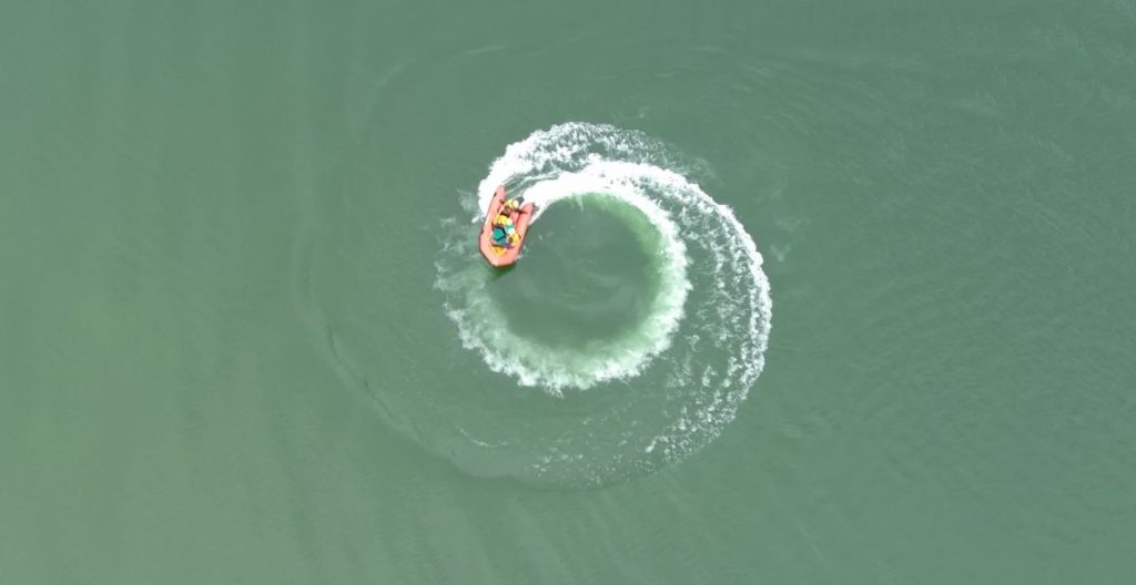 1.水域救援演練:演練消防人員使用動力小船操作S形行進,Z字形行進迴避障礙物及0形救援接近待救民眾
