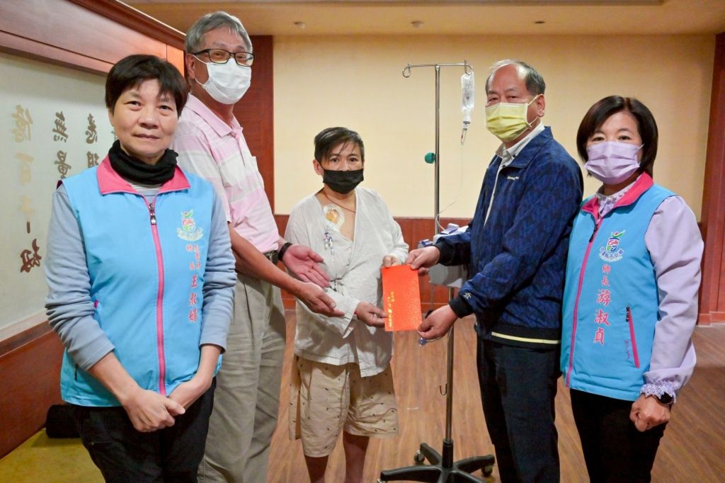 鍾姓案主原以綁鐵工作維生,三年前罹病後頻繁住院治療,後期病況惡化致無法工作,生活頓失經濟依靠。公所在掌握其處境後即啟動社會救助網絡,持續追蹤關懷;去年7月先核定急難救助金1萬元,並轉介張榮發基金會,共協助爭取1萬6,000元善款。昨日游淑貞再與兩位董事長親赴病房關心、加油打氣,致上仁愛基金補助,盼為案主注入一股暖流與力量,讓她在困境中仍感受社會各界的溫暖。