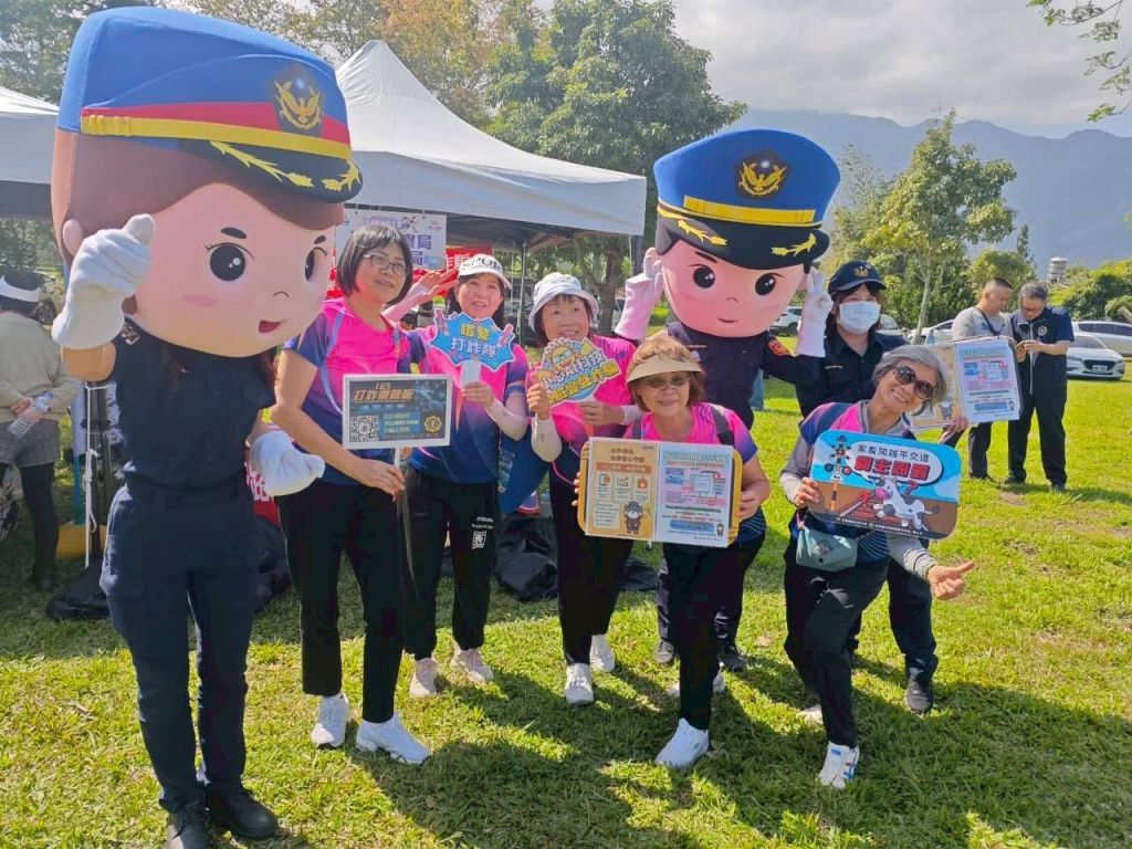 「大農大富親子健走嘉年華」於昨(15)日下午在大農大富平地森林園區熱鬧登場,鐵路警察局花蓮分局也到場設置宣導攤位,向參與活動的親子及民眾宣導交通安全及防詐騙觀念。活動現場除透過有獎徵答及宣導摺頁分享常見交通安全注意事項與詐騙手法外,大型鐵警公仔也現身與民眾互動合影,吸引不少大小朋友駐足拍照,現場氣氛熱絡。
