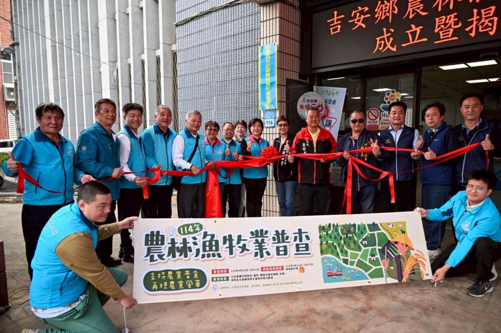 吉安鄉公所配合花蓮縣政府辦理114年農林漁牧業普查,今(16)日上午舉行「吉安鄉農林漁牧業普查所」揭牌儀式,鄉長游淑貞偕鄉民代表會主席邱美雲、代表黃登科、各村長及吉安鄉農會秘書張建材等人共同參與,象徵吉安鄉普查工作正式啟動。由於吉安鄉普查總家數達三千餘戶為全縣最多,相關整備工作亦同步展開,以利後續調查順利推展。