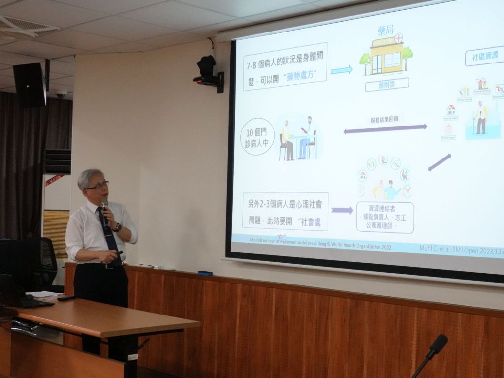 王英偉教授在說明會中指出,「社會處方」是一種以人為中心的健康促進模式,當民眾因孤獨、壓力、慢性疾病或生活困境影響身心健康時,除了醫療照護之外,也可以透過社區活動、志願服務、文化學習、運動休閒等方式,連結社區資源,讓生活重新找到支持與力量。透過這樣的方式,不僅能改善身心健康,也能強化社會連結,提升整體生活品質。