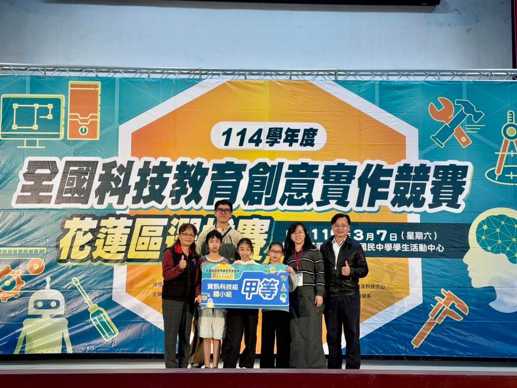 花蓮縣玉里國小學生參加「114學年度全國科技教育創意實作競賽」花蓮區選拔賽 ,於「資訊科技組(國小組)」勇奪特優與甲等佳績 ,表現亮眼。其中,由陳蔚雲、何炘宇、呂祉霖組成的隊伍榮獲特優 ,更令人振奮的是,何炘宇同學在賽事中展現卓越實力,拿下全場唯一滿分!此特優團隊將代表花蓮縣參加全國賽;顏昱安、林以橙、蔡雨欣組成的隊伍則獲得甲等肯定 。