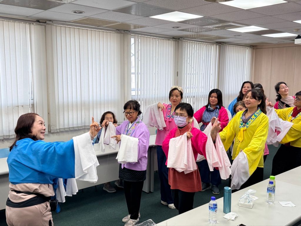 活動當日,陶卉以清唱一段越劇曲為開場,接續分享己身來臺生活適應歷程,並講解越劇的淵源以及該藝術重在化妝、手勢及腳步等面向。為加深學員們對於越劇的認識及了解,陶卉特準備五顏六色的水袖服裝讓學員們試穿,同時帶動學員們體驗越劇的各式手勢及走位。來自浙江的新住民趙玉珍女士表示:「小時候父母常常帶她觀賞越劇表演,透由這次的水袖操體驗,勾起她童年的難忘回憶」。另印尼新住民周宜葶女士也表示:「初次體驗水袖操很有趣,超開心!」最後,土地銀行為新住民及其家屬宣導反詐騙及理財等相關資訊,讓大家收穫滿滿,畫下圓滿句點。