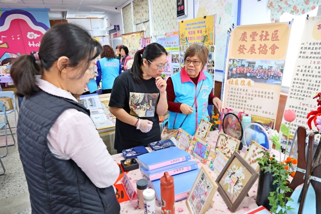 評鑑會場中陳列琳瑯滿目的社區服務成果,例如:稻香社區開辦長者嘻哈街舞、雷雕及無人機教學等多元課程;宜昌社區繪製「宜昌生活圈」社區街道圖,納入重點館舍、美食與景點等實用資訊;太昌社區則積極推動「數位應用培力」,教導長輩使用AI工具,促進數位共融…等,皆獲評審好評。