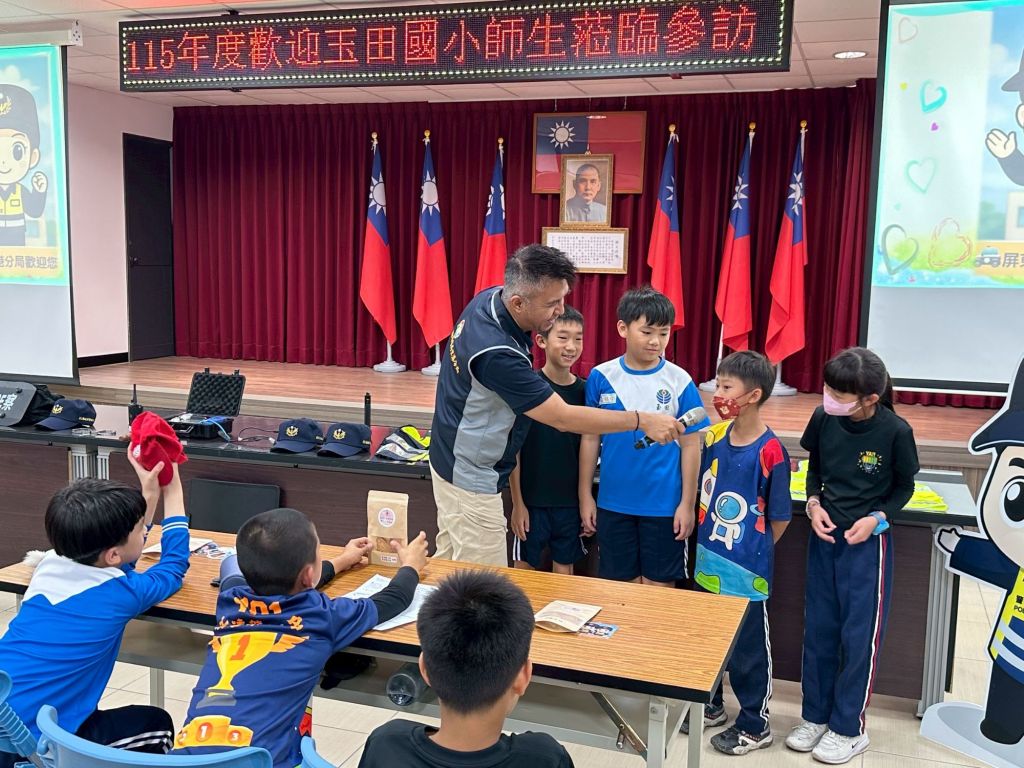 屏東縣里港鄉玉田國小四年級師生於今(24)日分2梯次到訪屏東縣政府警察局里港分局,進行校外參訪活動。為讓學童更加了解警察日常工作與學習安全觀念,里港警分局特別安排多項宣導與體驗課程,包含婦幼安全、交通安全及反詐騙宣導,並結合有獎徵答與警用裝備介紹,讓孩子們在輕鬆互動的氣氛中學習重要的安全知識。