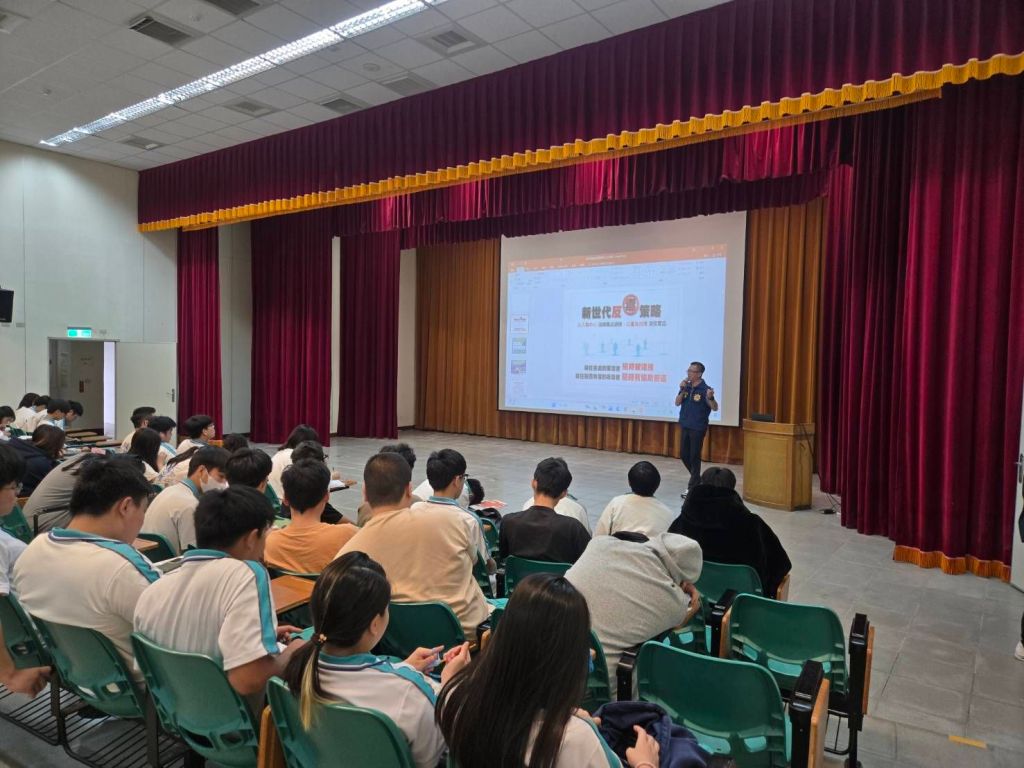 此外,玉里警分局偵查隊長黃成文及玉里派出所副所長林業宸,亦主動前進玉里高中,進行校園安全宣導。宣導內容涵蓋「跟蹤騷擾防制法」、「毒品防制」、「常見詐騙手法」及「交友陷阱」等議題,並搭配發放宣導文宣及小卡,以「分齡、分眾」方式推動宣導工作,依不同年齡層及生活型態規劃內容,從小培養學生防詐、防竊及安全駕駛觀念。